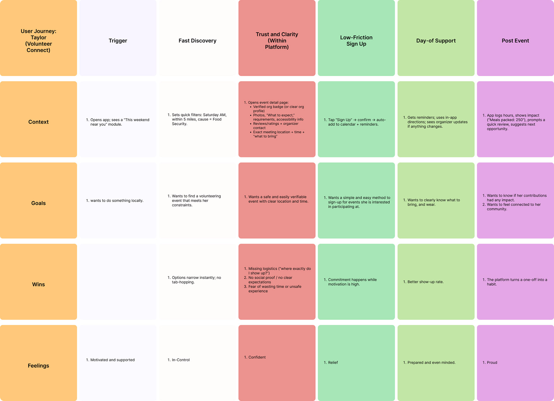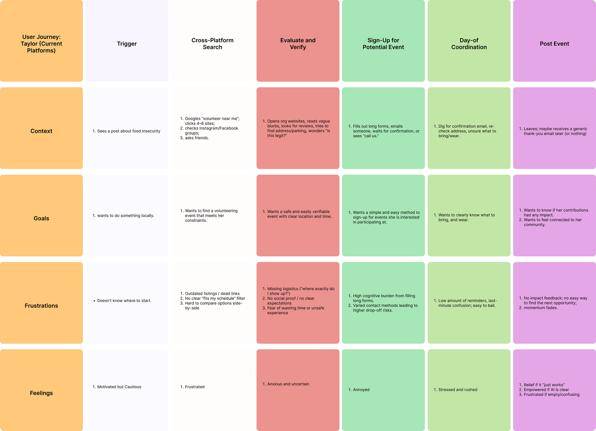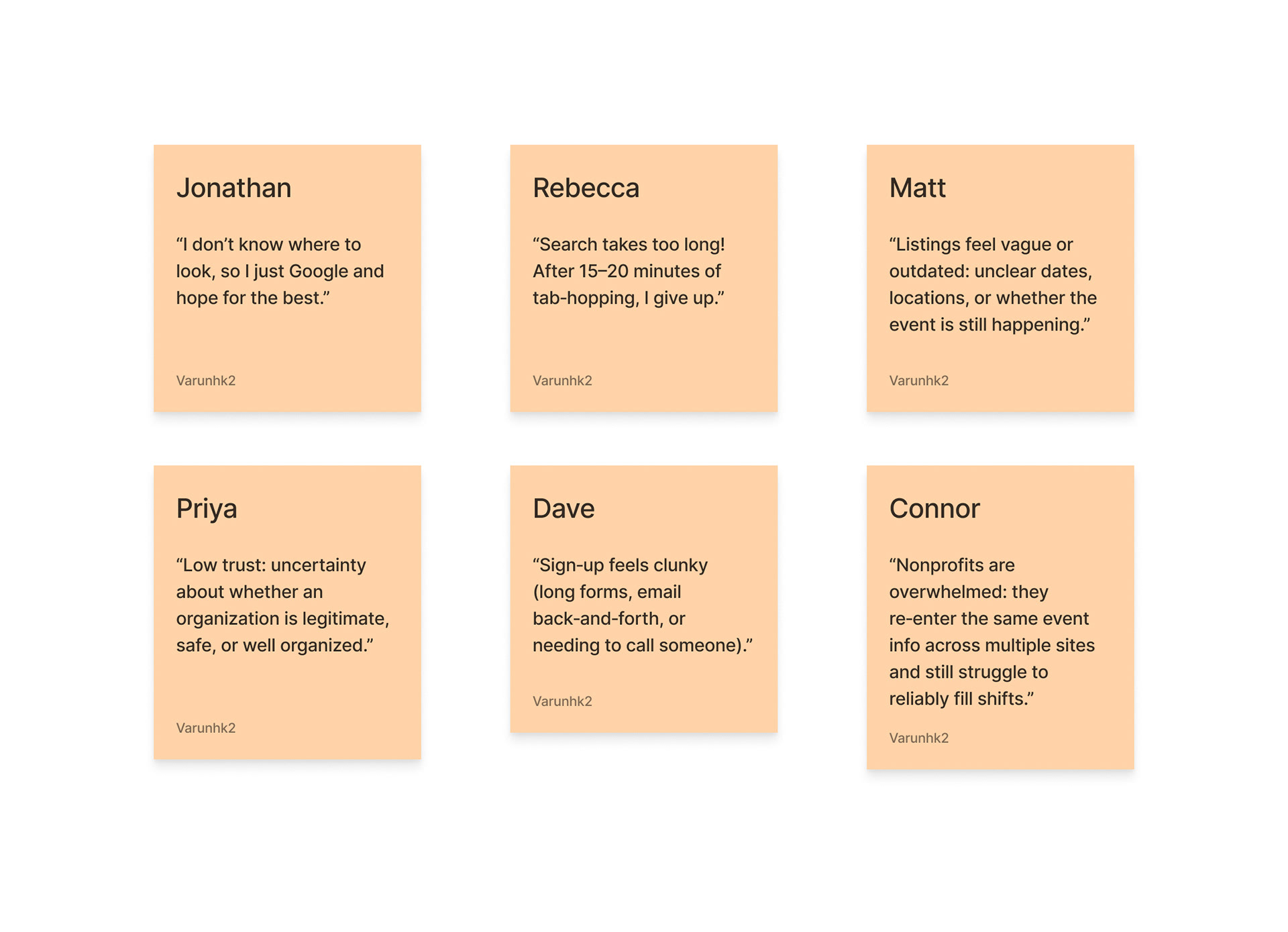 Volunteers struggle to find suitable roles due to fragmented information, creating a high‑friction process that leads to drop‑offs. Nonprofits, in turn, face unreliable support and unfilled roles.