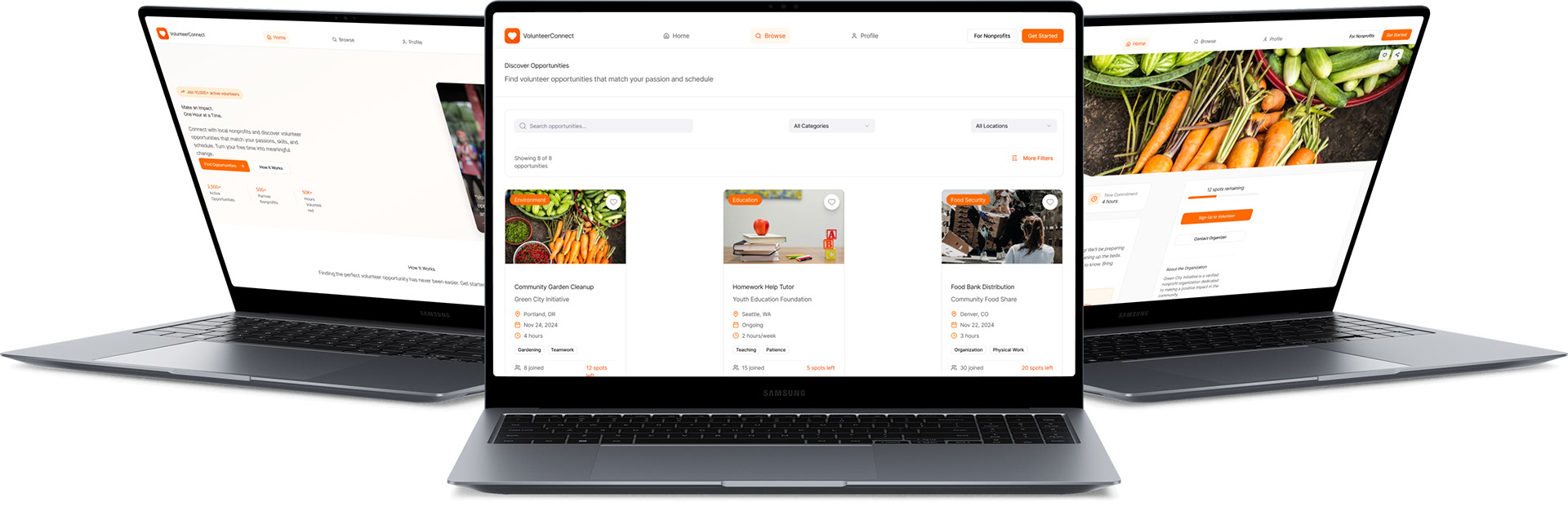 Design a platform that instantly matches volunteers with nearby, verified opportunities fitting their schedule and interests, while giving nonprofits a simple tool to post and manage needs to keep good intentions from stalling at search.